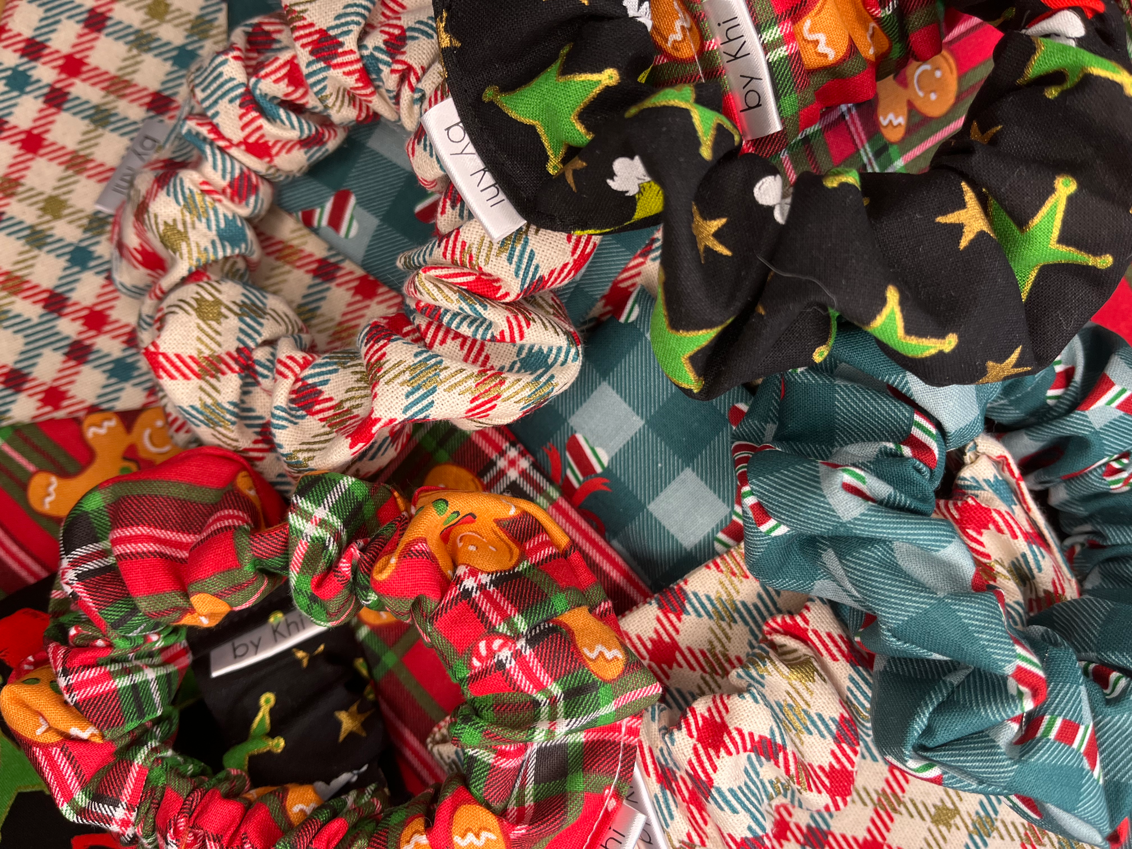 The scrunchie bandanas are washable. Machine wash in cold water, or hand wash. Lay or hang to dry.
